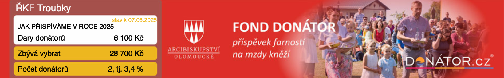 Přehled mimořádných sbírek ve farnosti Troubky na rok 2026: